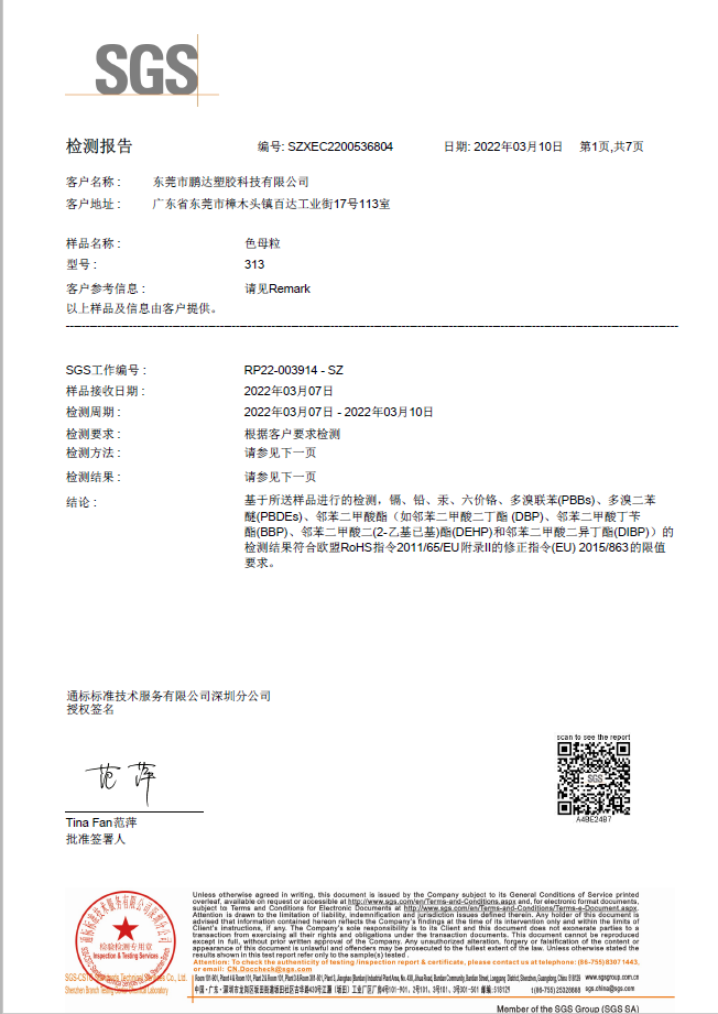 東莞市鵬達塑膠科技有限公司是一家集色母、色粉、功能母粒、染色抽粒、改性工程塑料的研發(fā)、生產、銷售于一體的生產企業,座落于中國塑膠商貿重鎮-廣東省東莞市樟木頭鎮,公司建立了一套完善的研發(fā)生產、品質管理、銷售服務體系,依托自身強大的研發(fā)能力及嚴謹高效的管理,生產高品質、高技術含量的健康環(huán)保色母粒和多功能母粒,年生產能力達萬噸,給廣大客戶提供了可靠的交貨保障。